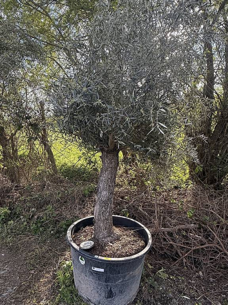Schöner Olivenbaum (Olea europaea) mit natürlicher, eleganter Wuchsform zu verkaufen. Der Baum überzeugt mit seinem feinen, silbrig-grünen Laub, seiner luftigen Krone und dem mediterranen Charakter. Durch seine gewachsene Form wirkt er besonders lebendig und stilvoll.