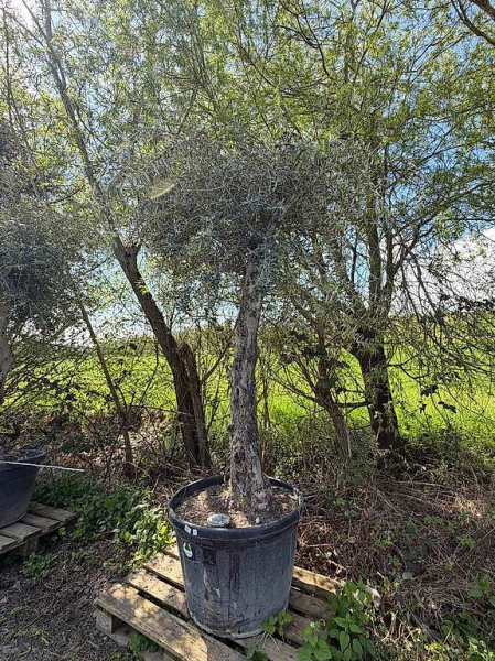 Schöner Olivenbaum (Olea europaea) mit natürlicher, eleganter Wuchsform zu verkaufen. Der Baum überzeugt mit seinem feinen, silbrig-grünen Laub, seiner luftigen Krone und dem mediterranen Charakter. Durch seine gewachsene Form wirkt er besonders lebendig und stilvoll.